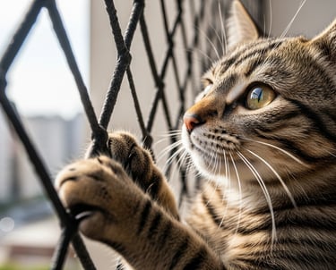 Seu gato curioso em segurança total: redes de proteção resistentes, ideais para quem tem pets e não abre mão de janelas e sacadas abertas.